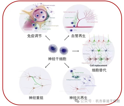有学者研究发现,干细胞在适宜的条件下能定向分化为神经元和神经胶质细胞,分泌多种细胞活性因子,通过多向分化、免疫调节、抑制炎性反应、减少细胞凋亡等作用机制,实现对受损组织的修复。