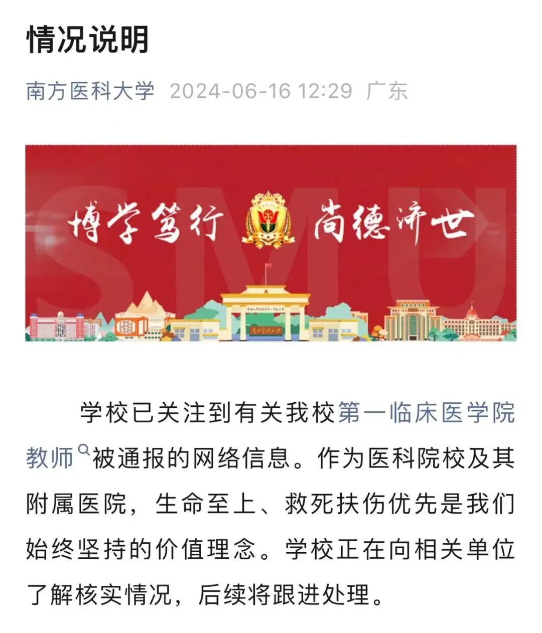 近日,南方医科大学一名教师因救人上课迟到被罚,引发热议。南方医科大学回应称,学校正在了解核实情况,后续将跟进处理。