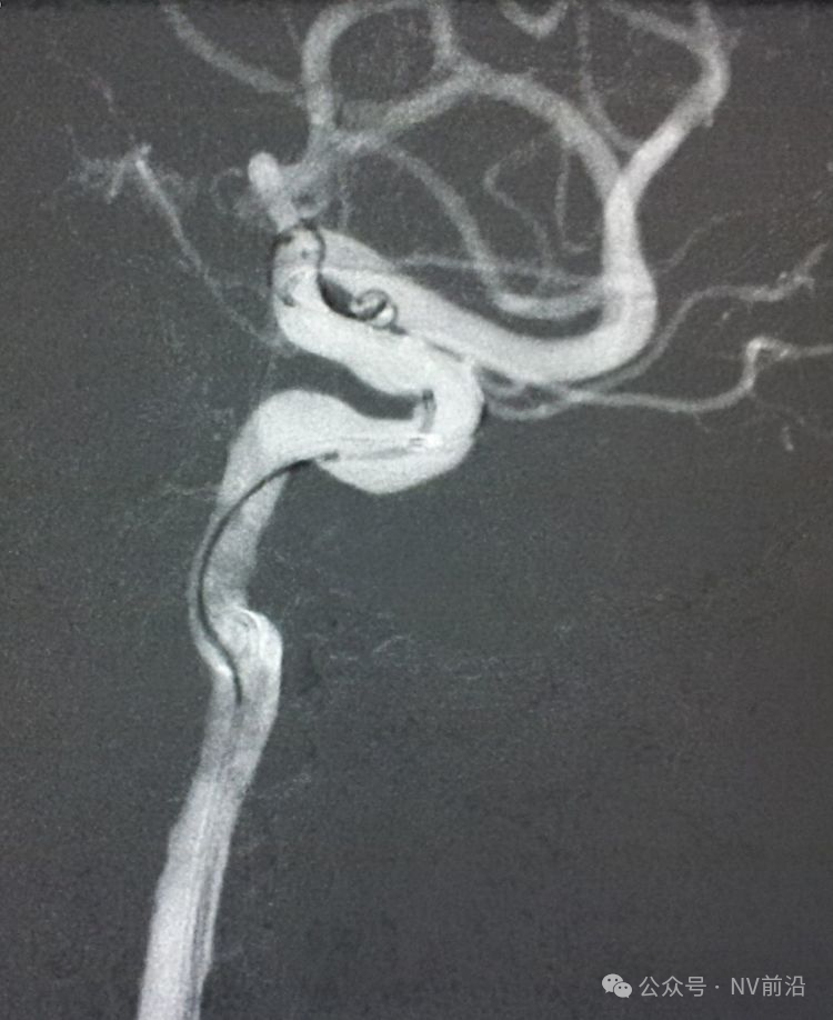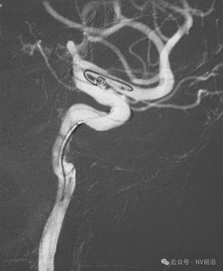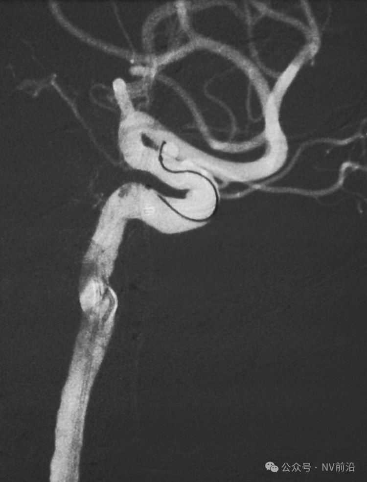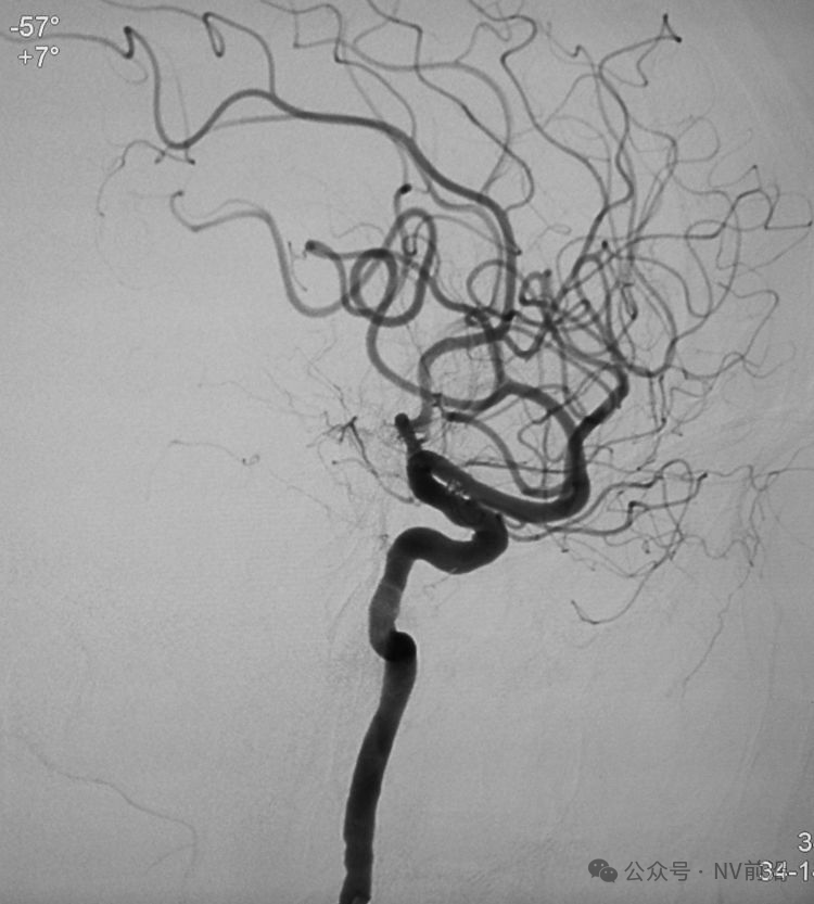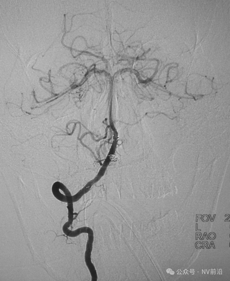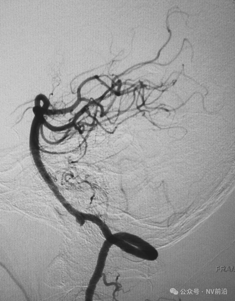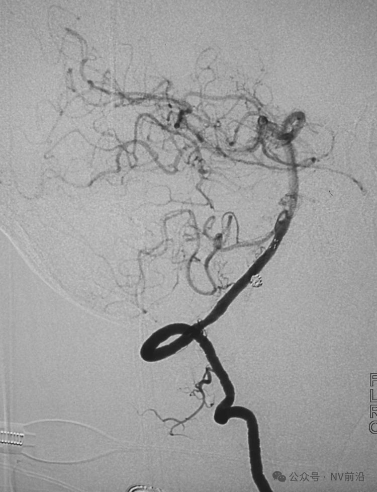术后左颈内动脉工作位造影和蒙片。