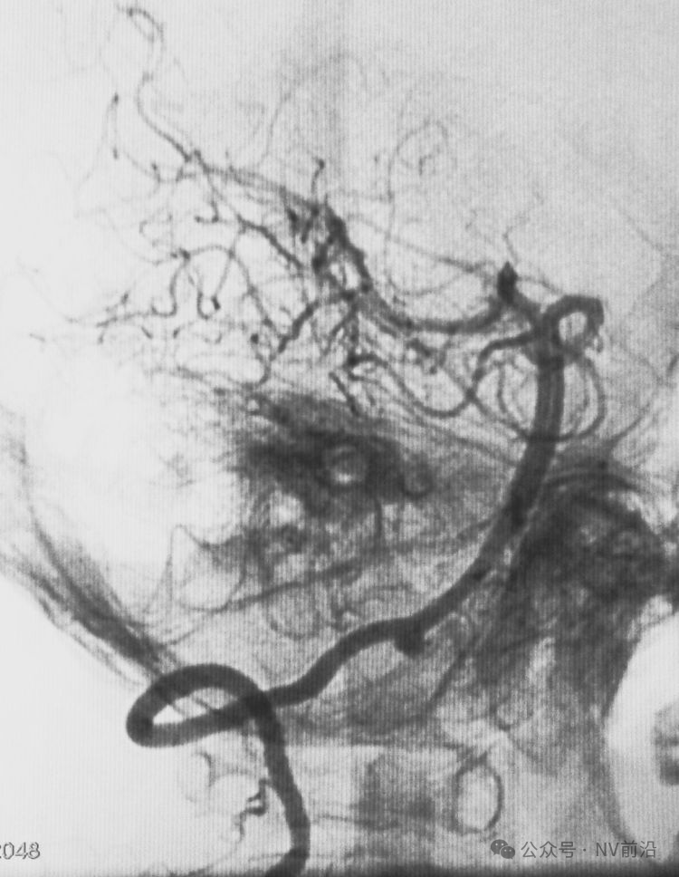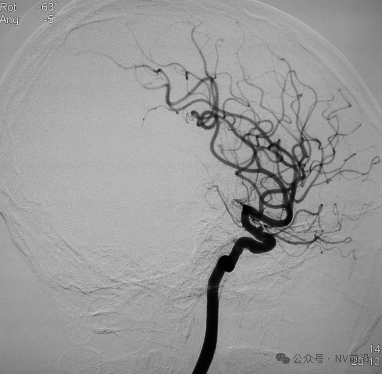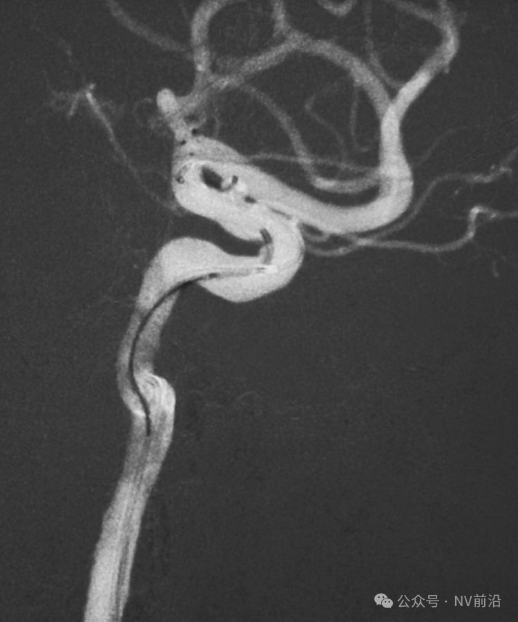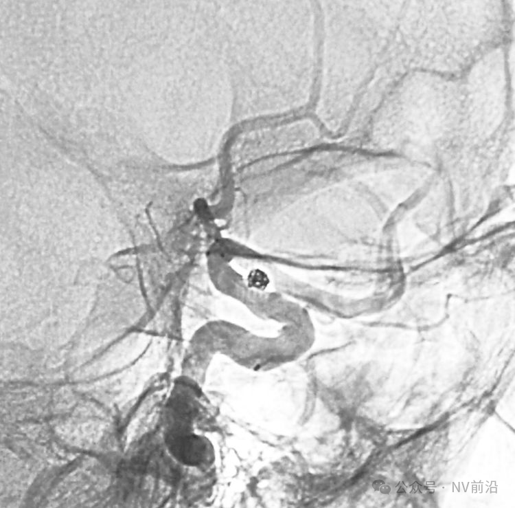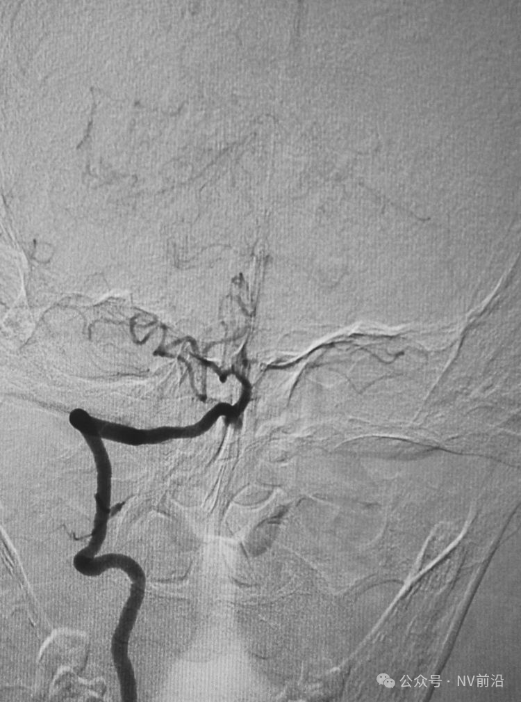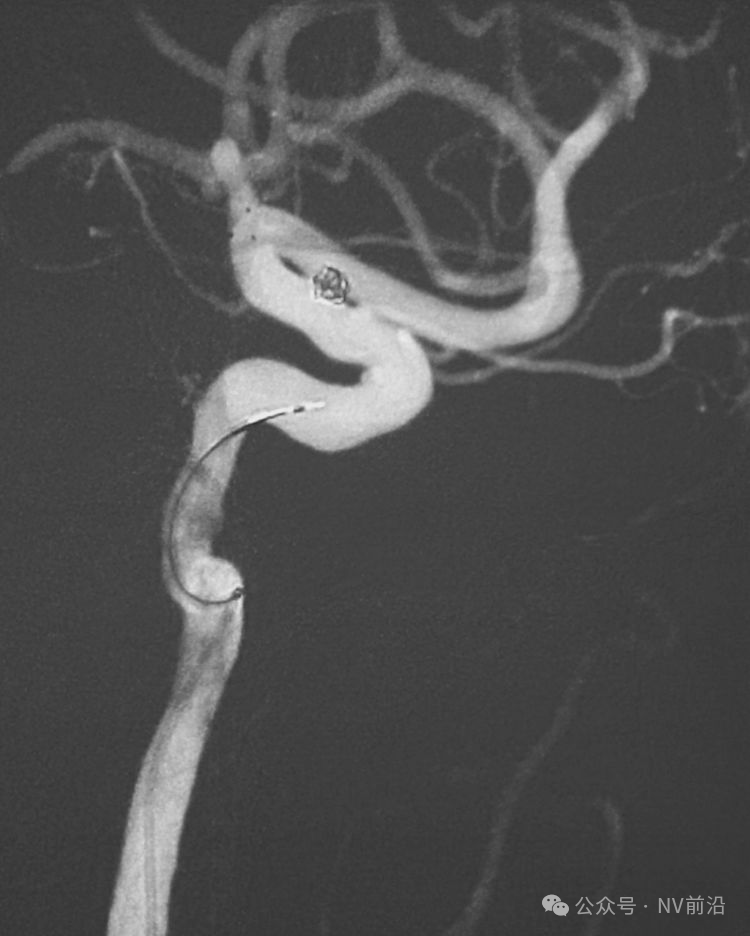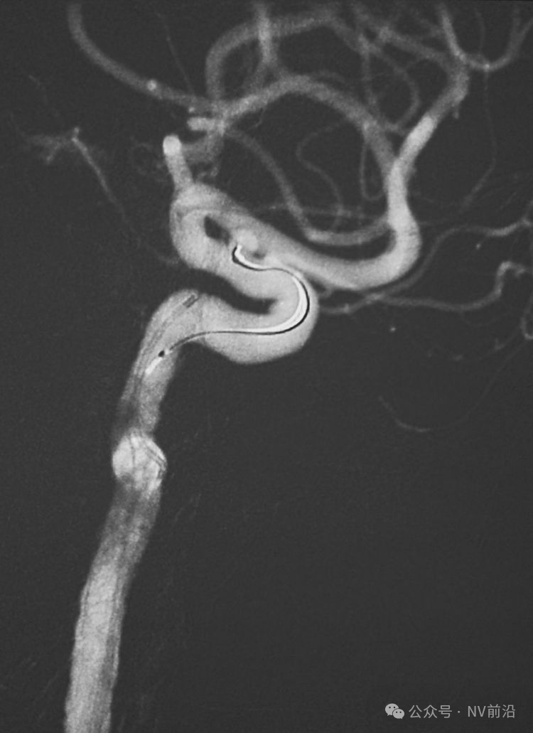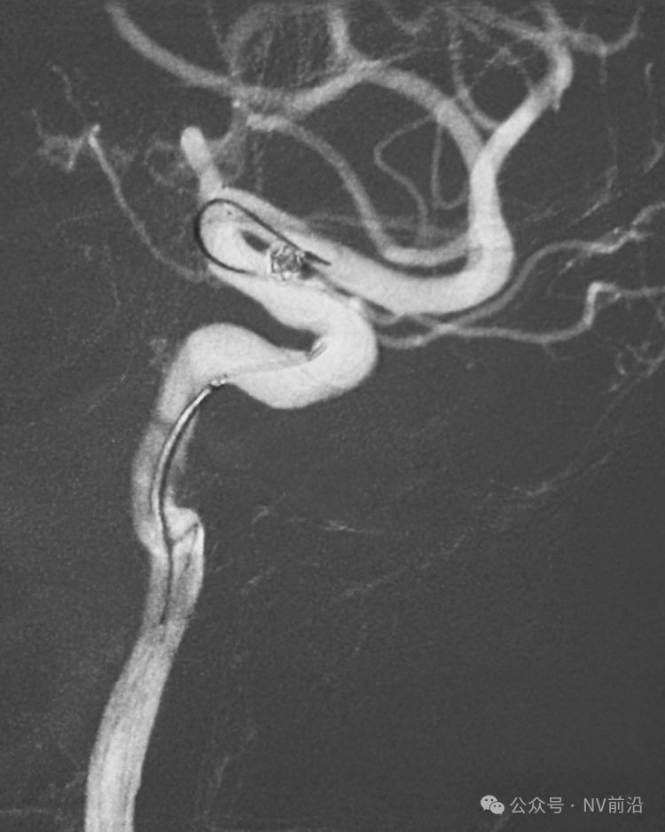 术后左颈内动脉工作位造影和蒙片。