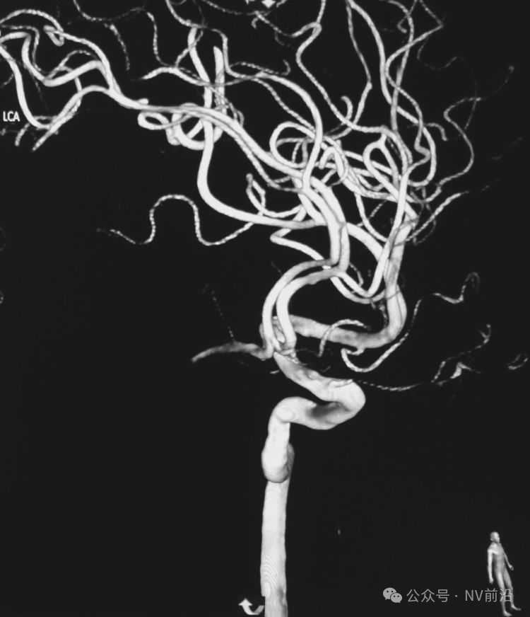 术后左颈内动脉造影三维重建显示动脉瘤消失。