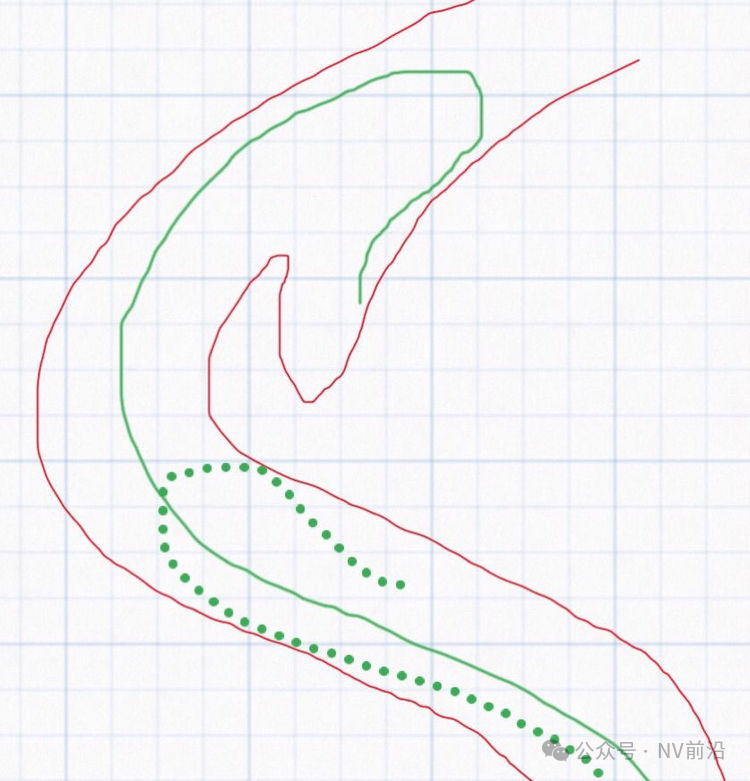 Solitaire 4×15支架(绿线)跨瘤颈半释放,压住微导管(红线)。
