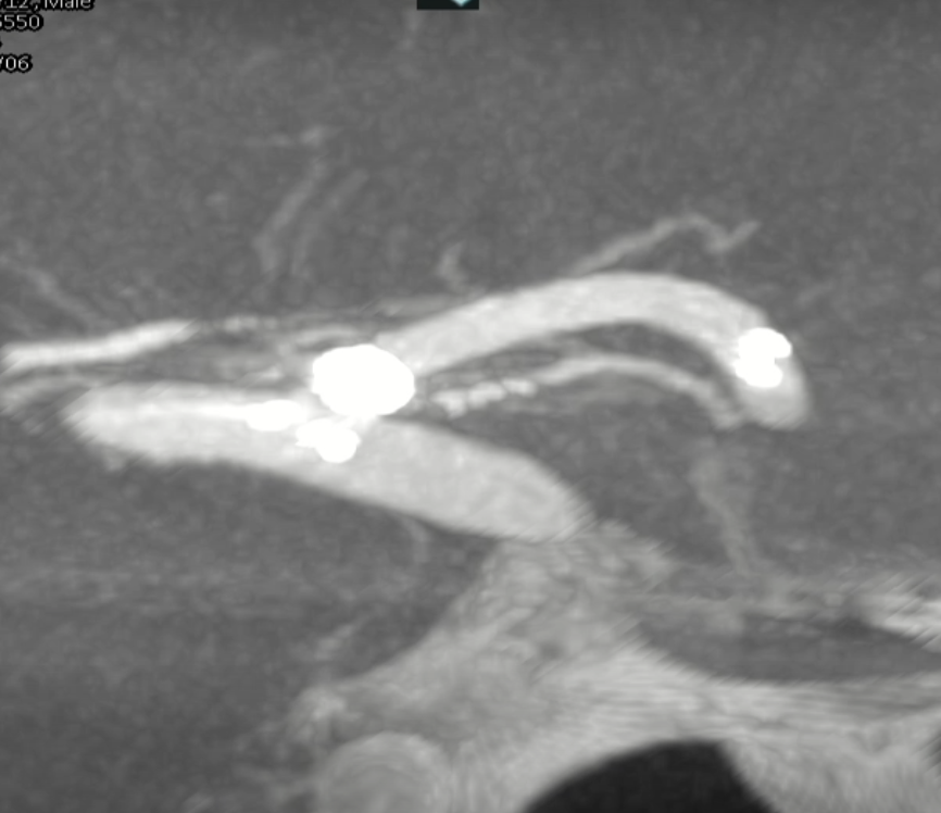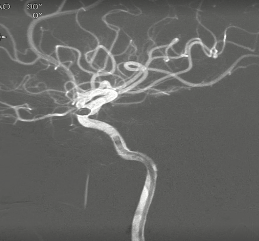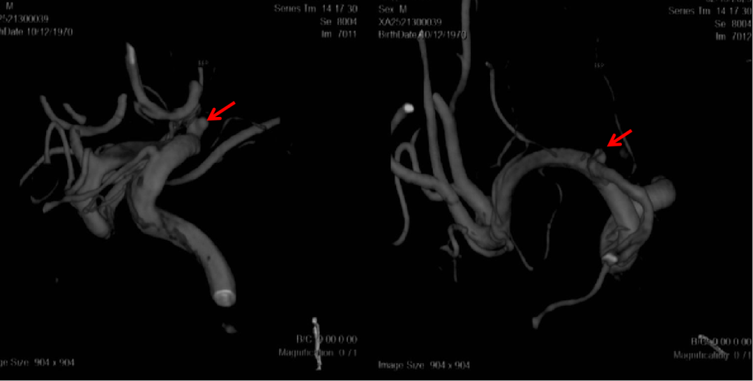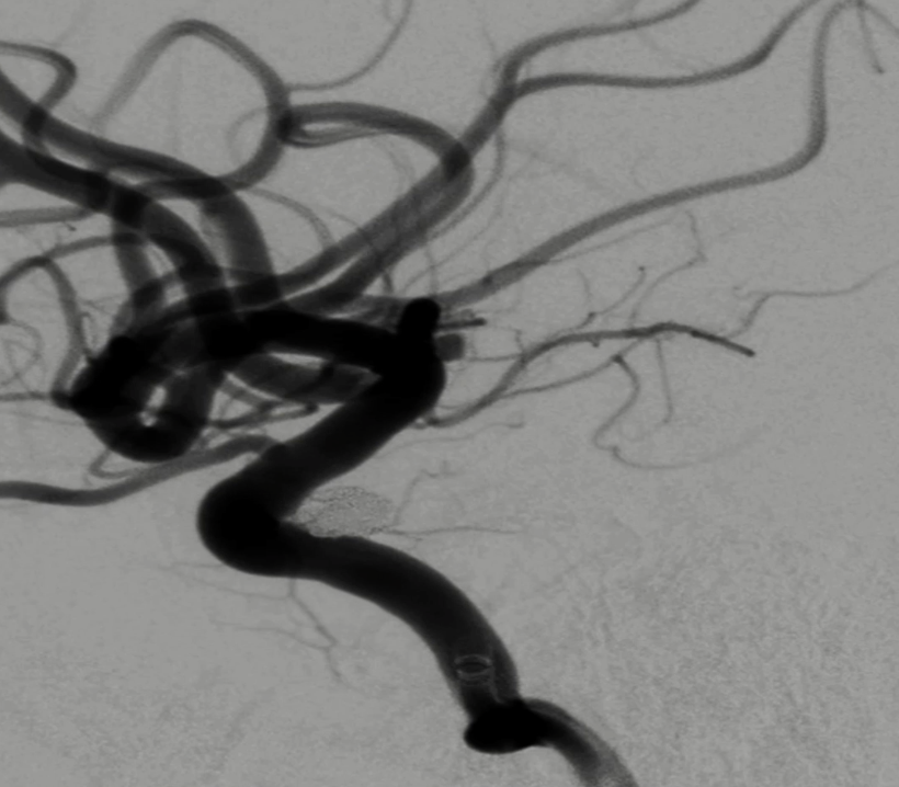 既往史:2年前体检发现左侧颈内动脉眼动脉段动脉瘤行单栓治疗。