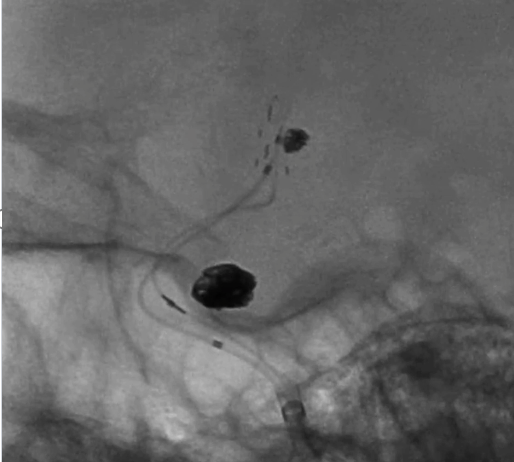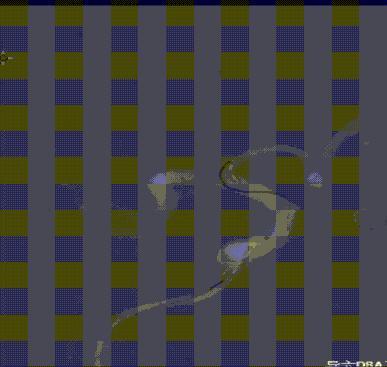 Asahi 0.014微导丝塑形后辅助Echelon 10微导管进入A2远端备支架释放。
