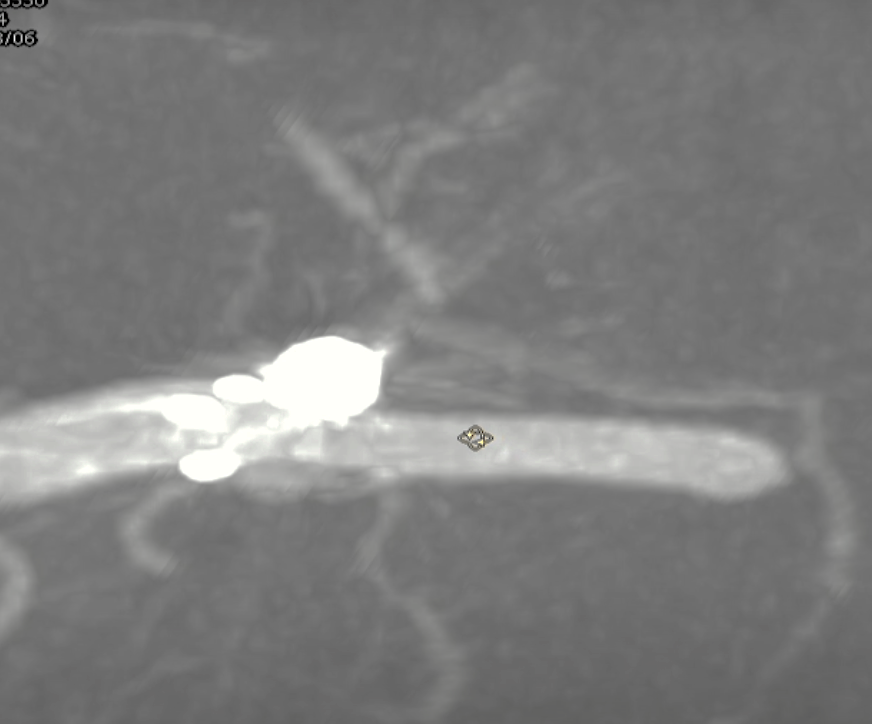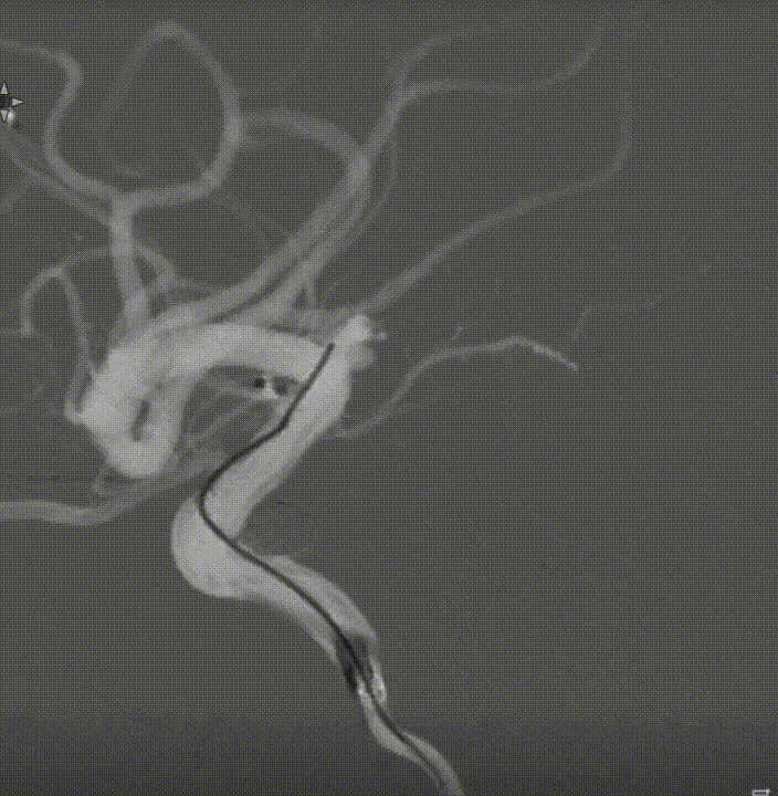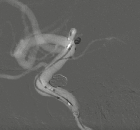 术后支架重建:支架打开良好,近端Marker位于颈内动脉分叉处