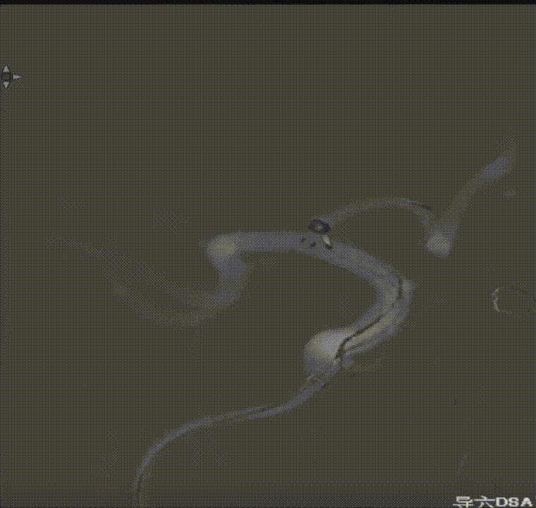 6F Envoy DA在泥鳅导丝辅助下超选至右侧颈内动脉海绵窦段后膝。