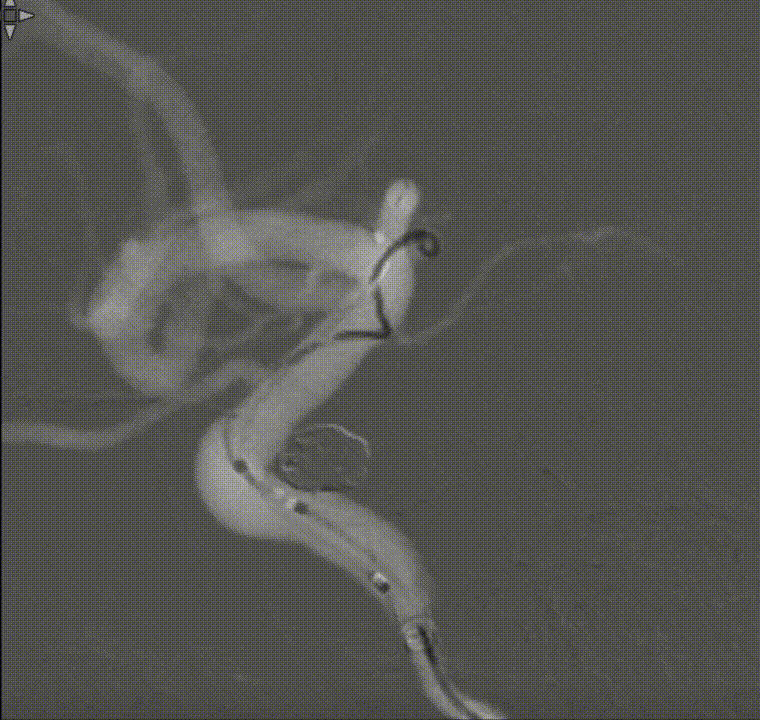 2、该动脉瘤为宽颈,需要支架辅助栓塞以实现满意的长期疗效,支架释放要求近端可以精准定位,由于A1段直径较小,故最好为低外径支架,以减少较大直径(2.1F)的支架微导管对弹簧圈微导管的干扰。本病例选择低外径的激光雕刻开环支架Atlas,很好的满足上述要求。