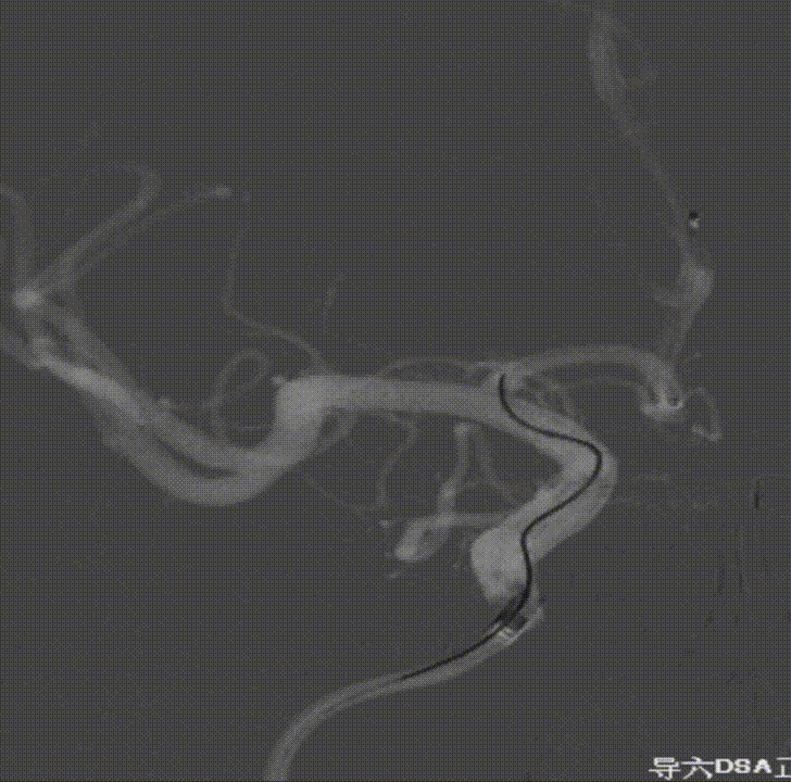 5、本病例中,还要注意支架近端的头端尽量少进入颈内动脉,以减少对远端大脑中动脉的影响。