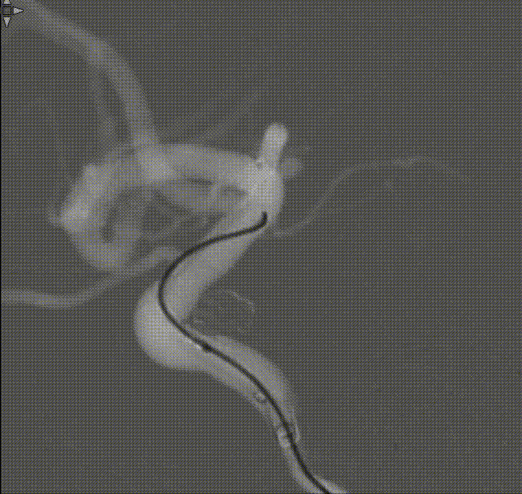 Asahi 0.014微导丝导引璞慧 0.017微导管进入动脉瘤内。