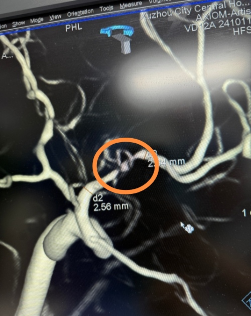 今天中午,徐州市中心医院高级卒中中心血管内治疗负责人、三级正高傅新民主任神经介入团队,在新建复合手术室成功开展一例大脑中动脉血管内支架植入术。凭借高清实时成像、精准定位释放、全程可视化监控等优势,手术实现支架完美贴壁、血流通畅重建,有效规避支架内血栓等高风险并发症,为一名进展性肢体活动障碍1个月、左侧大脑中动脉次全闭塞(狭窄>95%) 的低灌注性脑梗死患者打通“生命通道”,标志着医院在复杂颅内血管病变、高危进展性脑卒中的精准救治能力再获新突破。