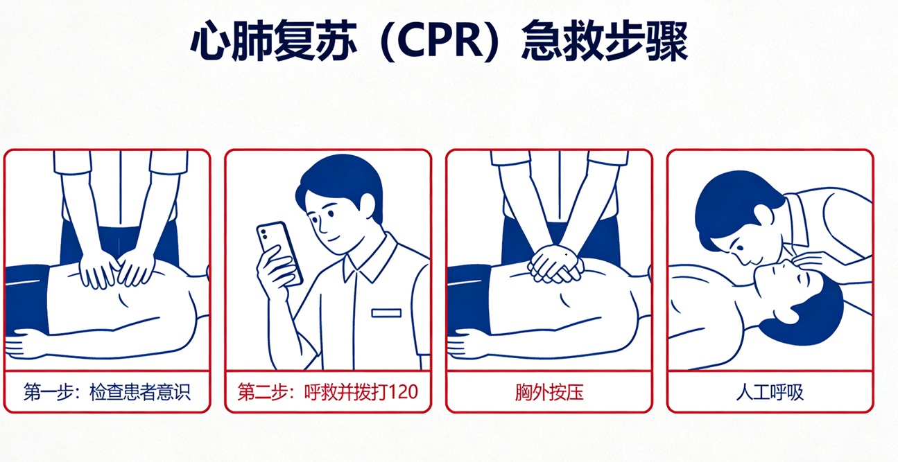 1. 快速判断:发现有人倒地,先轻拍呼唤判断意识,触摸颈动脉、观察胸廓起伏判断呼吸心跳,全程不超过10秒。