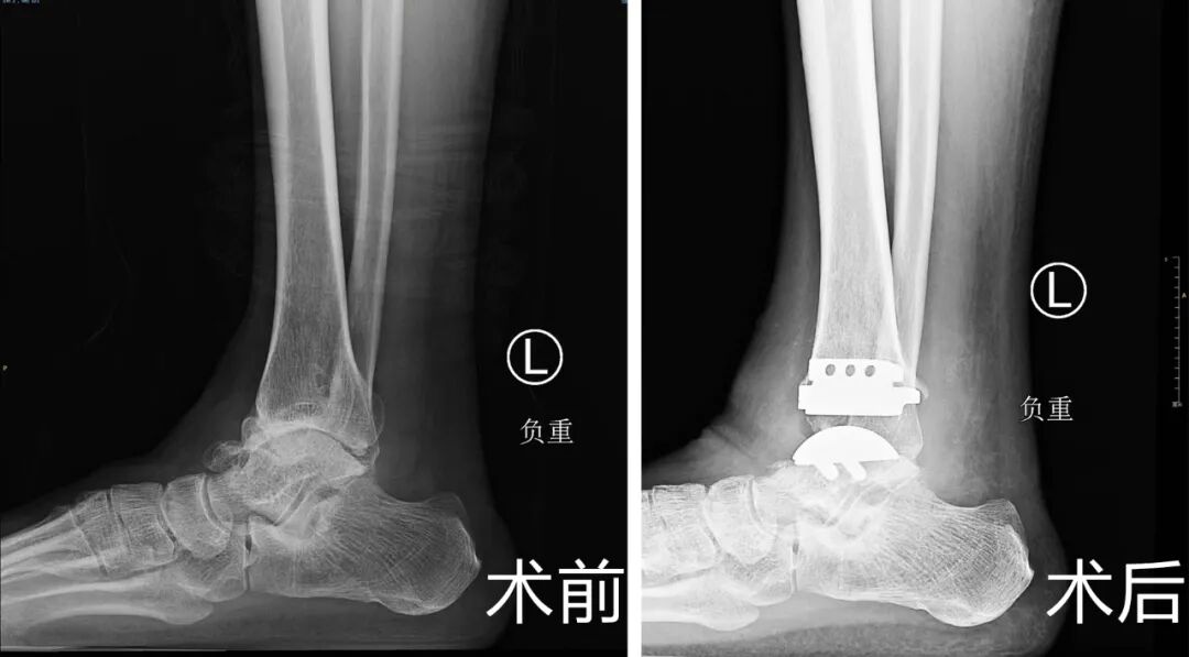 对于终末期踝关节炎,临床治疗有两种方法,一是关节融合,就是将关节固定,患者踝关节不能再曲伸,二是全踝关节置换,可以保留踝关节功能。经过沟通,大叔选择了可以保留踝关节活动的全踝关节置换术。