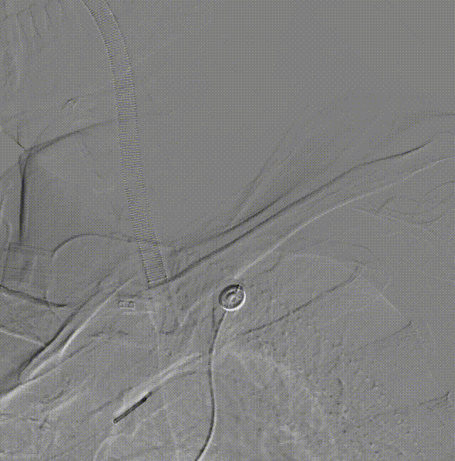 运用BASIS技术植入3.0*25mm Syphonet®取栓支架,输送球囊对闭塞段进行扩张。