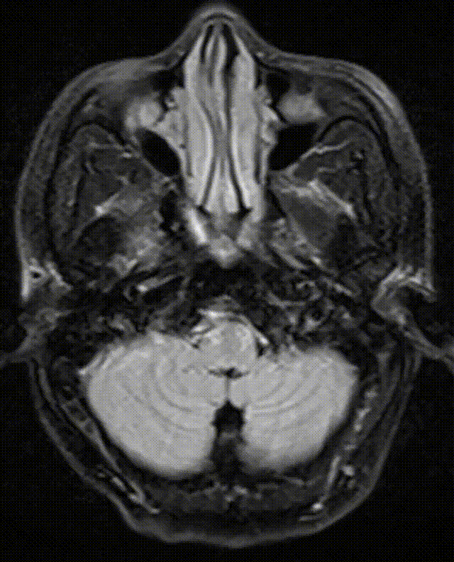 患者神志清楚,言语清楚,精神、睡眠可,大小便正常。查体:双侧瞳孔等大等圆,直径约3.0mm,光反射灵敏。双侧额纹、鼻唇沟基本对称,伸舌居中。四肢肌力5级,四肢肌张力基本正常,双侧腱反射(++),双侧病理征阴性,无脑膜刺激征。
