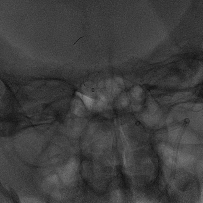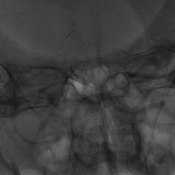 第二例患者采用加奇生物 6F Heralder®DA远端通路导引导管+5F Tethys®中间导引导管,在强支撑的同时,又能高到位,避免了采用8F导引导管或6F长鞘所导致的椎动脉容易痉挛、夹层等问题。