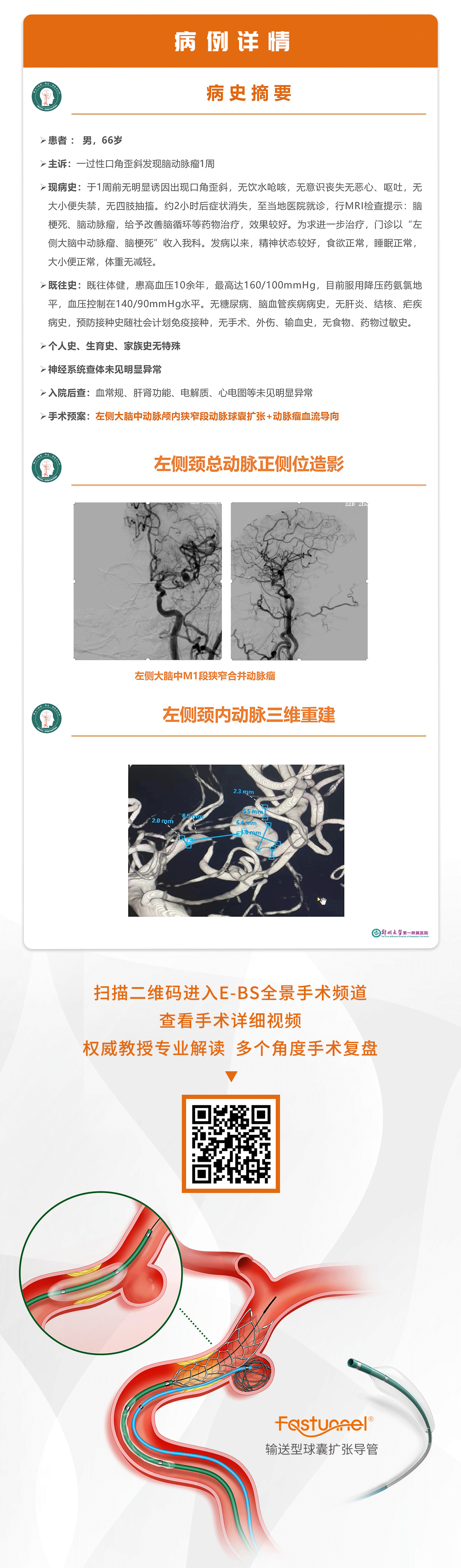 我们还将引入E-BS全景手术复盘系统实现复杂手术全景式观摩学习,帮助读者沉浸式跟随术者操作过程,深度掌握相关技巧。本期专栏为大家分享姚智强教授团队带来的ANSWER技术治疗左侧大脑中动脉多处狭窄合并串联动脉瘤一例!