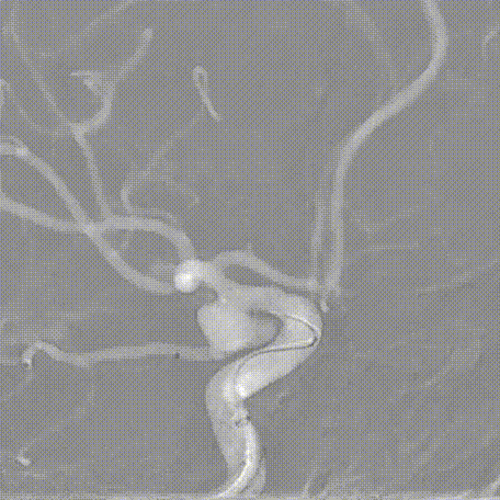 栓塞动脉瘤:在栓塞动脉瘤过程中血管造影可见后交通动脉均显影,动脉瘤栓塞致密,术中依次使用弹簧圈:使用Target2mm×4cm、Target2mm×4cm、Target2mm×4cm栓塞子瘤,再使用多枚弹簧圈补充栓塞瘤体。