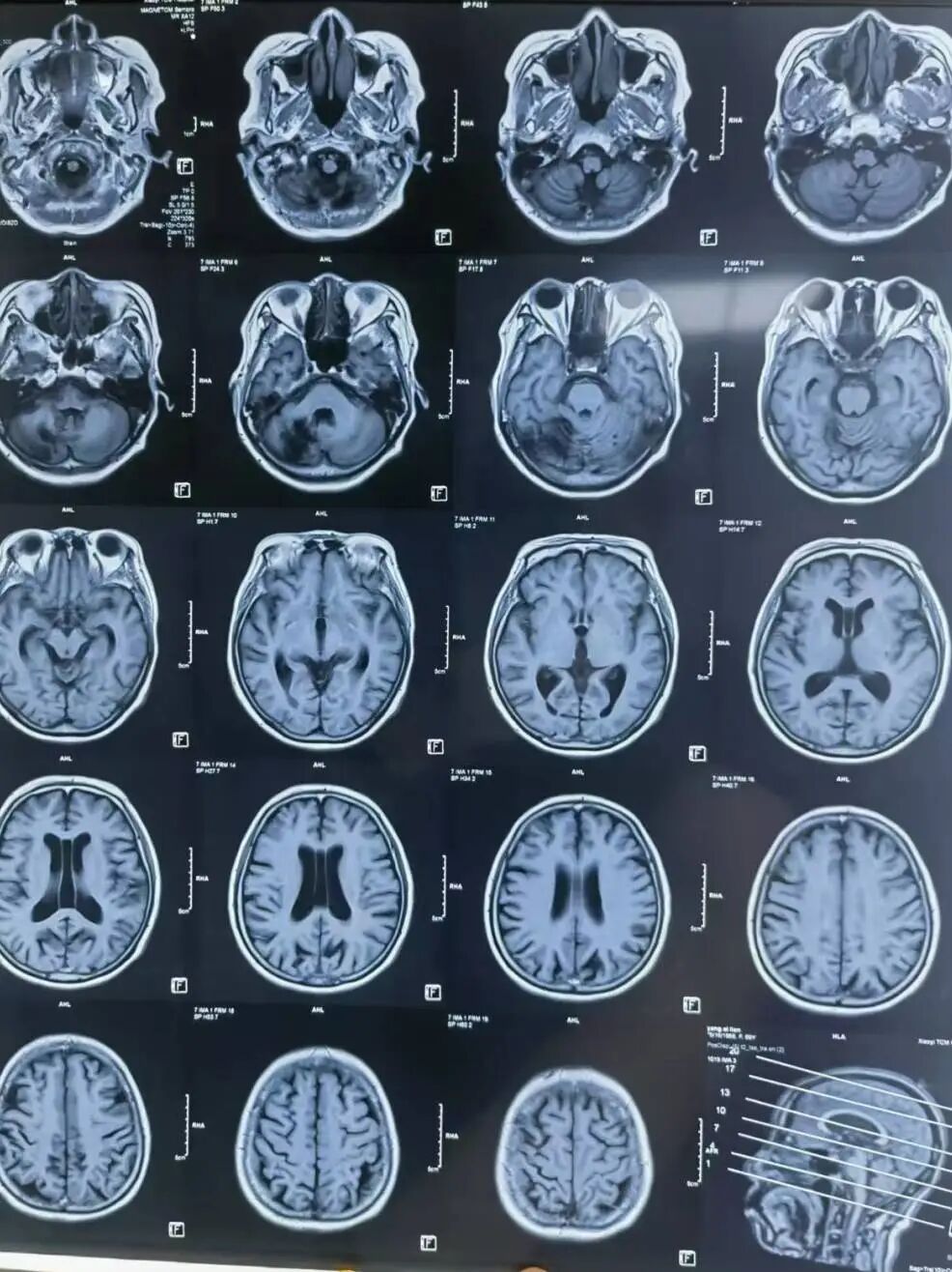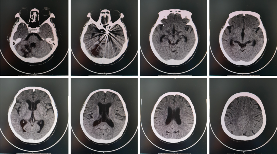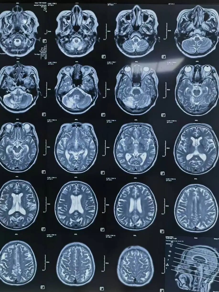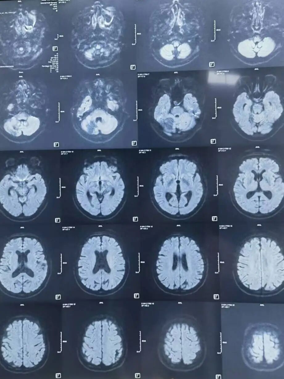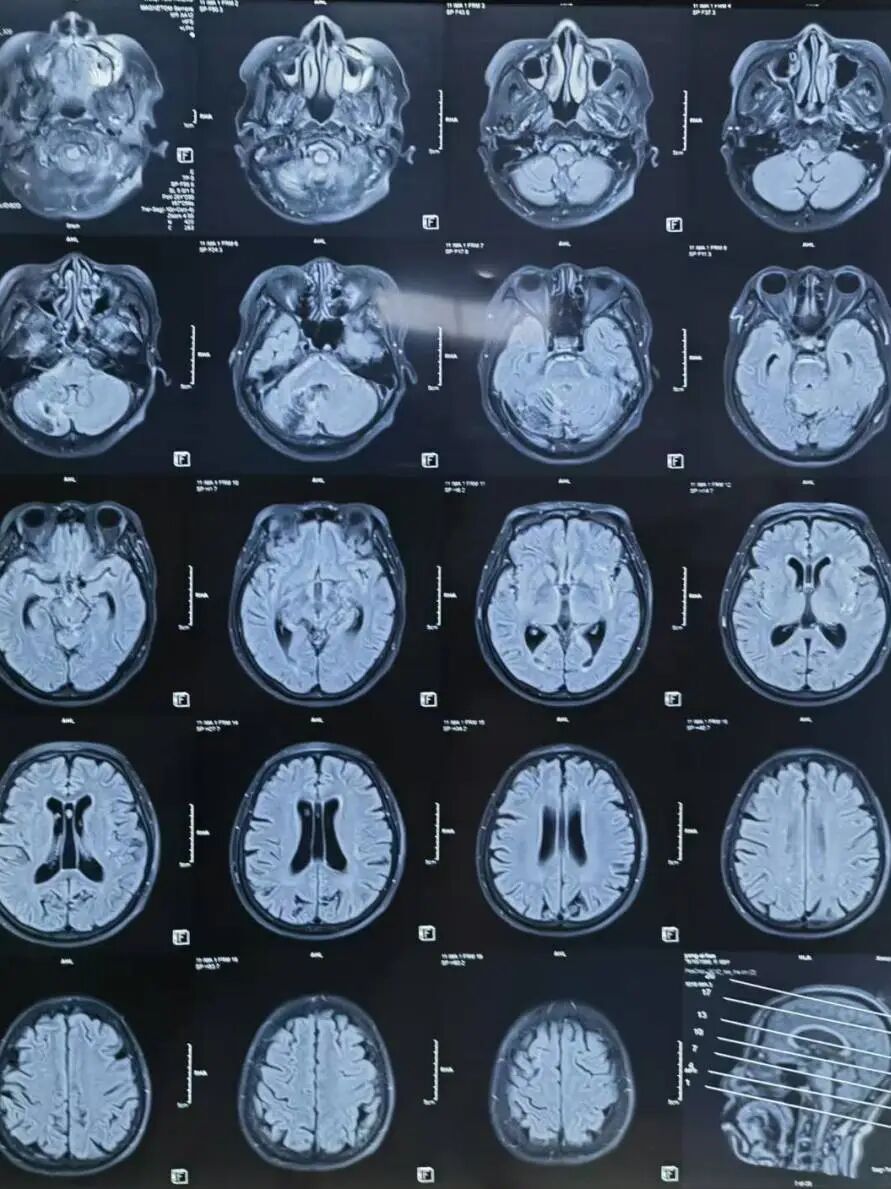 颅脑MR (当地医院) :左侧小脑半球、双侧侧脑室旁、基底节区及双侧额叶皮层下多发腔隙性脑梗死;右侧小脑半球软化灶。