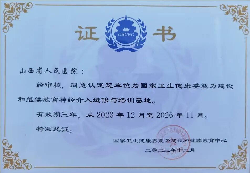 首批国家神经介入进修与培训基地。